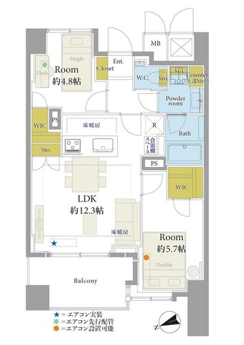 2LDK + 2WIC/52.45㎡