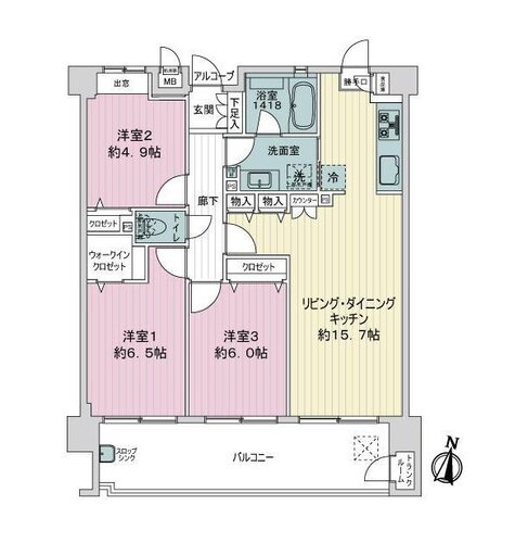 ○バルコニーにスロップシンク、トランクルームあり