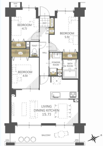 | 専有面積 | 壁芯 67.1㎡ | バルコニー面積 | 11.52㎡ |