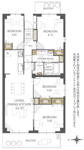 | 専有面積 | 壁芯 78.36㎡ | バルコニー面積 | 13.63㎡ |