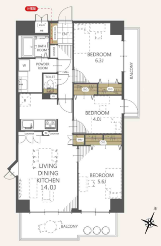 | 専有面積 | 壁芯 68.75㎡ | バルコニー面積 | 12.66㎡ |