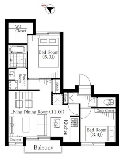 | 間取り | 2LDK + WIC | 方角 | 南西 |