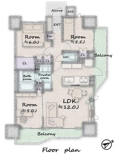 | 間取り | 3LDK | 方角 | 南東 |