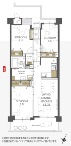 | 専有面積 | 壁芯 67.61㎡ | バルコニー面積 | 10.11㎡ |