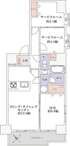 | 間取り | 1LDK + 2S | 方角 | 南西 |