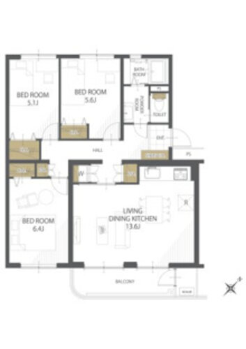 | 専有面積 | 壁芯 72.98㎡ | バルコニー面積 | 5.51㎡ |