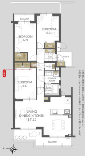 | 専有面積 | 壁芯 77.88㎡ | バルコニー面積 | 12.38㎡ |