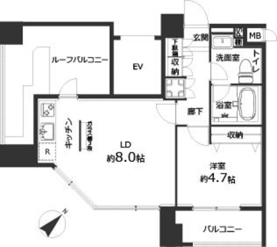 | 間取り | 1LDK + ルーフバルコニー | 方角 | 南東 |