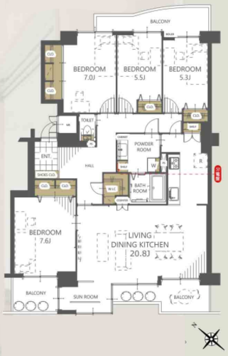 | 専有面積 | 壁芯 117.12㎡ | バルコニー面積 | 17.25㎡ |