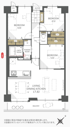 | 専有面積 | 壁芯 68.6㎡ | バルコニー面積 | 8.58㎡ |