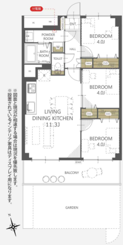3LDK + 専用庭/55.8㎡