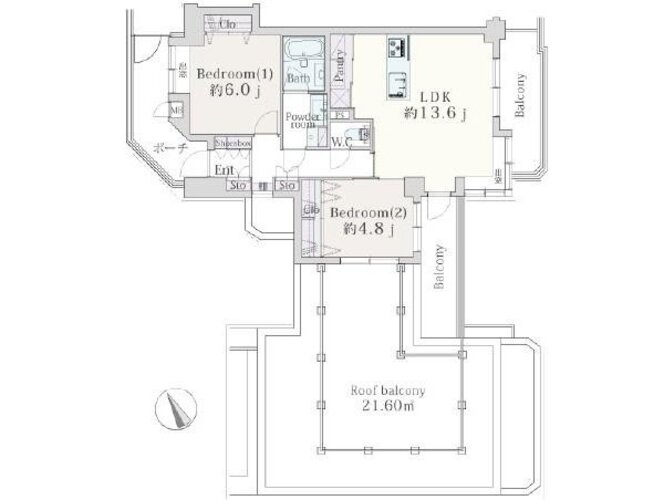 2LDK + パントリー+ルーフバルコニー/58.57㎡