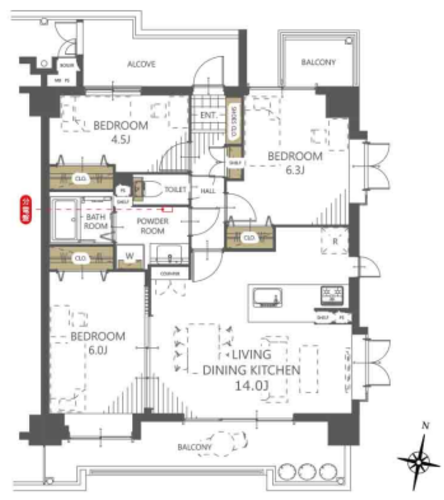 | 位置 | 角部屋 | 部屋 | 全居室フローリング |