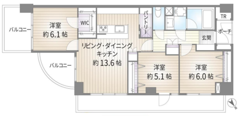 | 間取り | 3LDK + WIC+Pantry+TR | 方角 | 南東 |