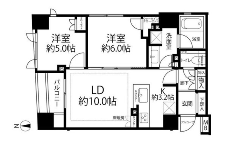 | 間取り | 2LDK + W | 方角 | 北 |