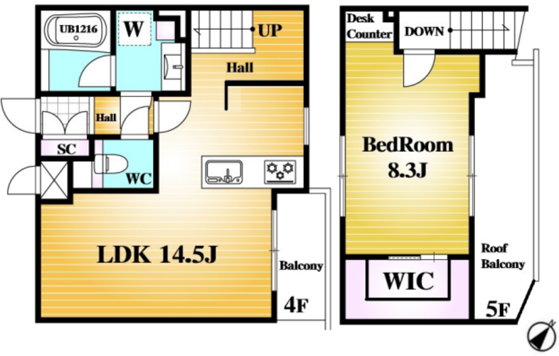 ■最上階の4・5階部分メゾネット~5階にはルーフバルコニー付き