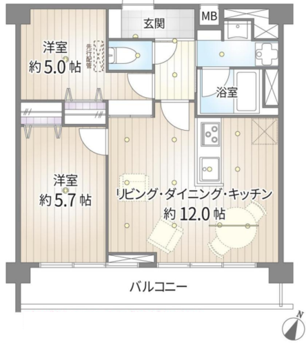 | 間取り | 2LDK | 方角 | 南東 |