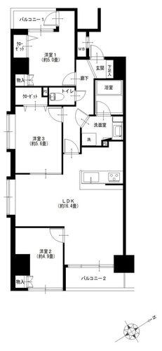 | 浴室・トイレ・洗面所 | 浴室乾燥機 / 追い焚き / 温水便座洗浄機 | バルコニー | 2面バルコニー |