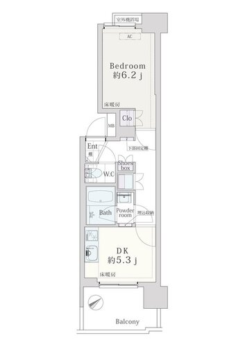 | 専有面積 | 壁芯 31.83㎡ | バルコニー面積 | 6.27㎡ |