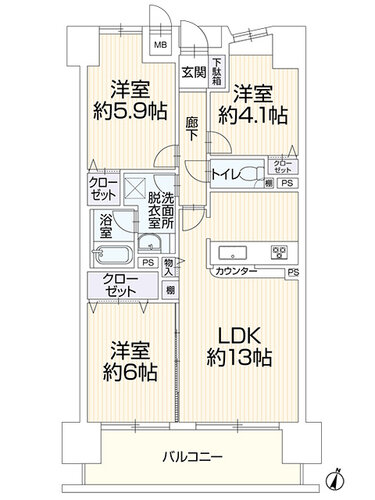 | 間取り | 3LDK | 方角 | 南東 |