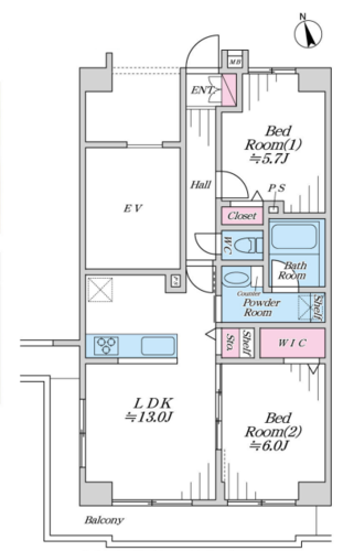 2LDK + WIC/57.12㎡