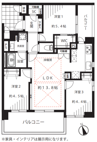 3LDK + WIC+SIC/66.76㎡