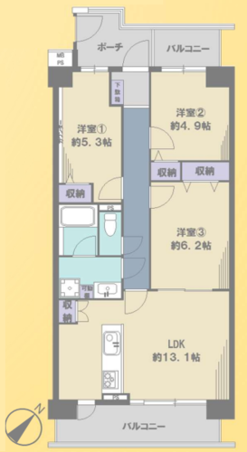 | 間取り | 3LDK | 方角 | 南東 |