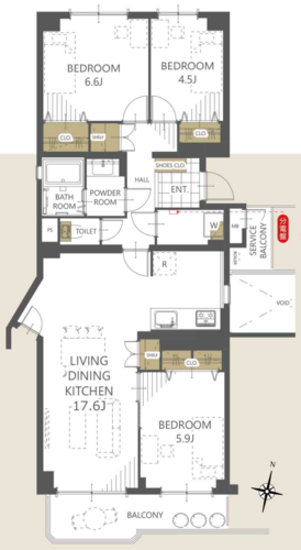 | 専有面積 | 壁芯 81.35㎡ | バルコニー面積 | 6.63㎡ |