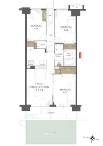 3LDK + 専用庭/63.8㎡