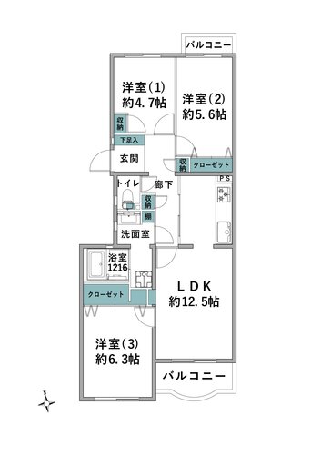 | 浴室・トイレ・洗面所 | バルコニー | 両面バルコニー | |
