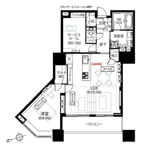 | 間取り | 1SLDK + WIC+SIC | 方角 | 南西 |