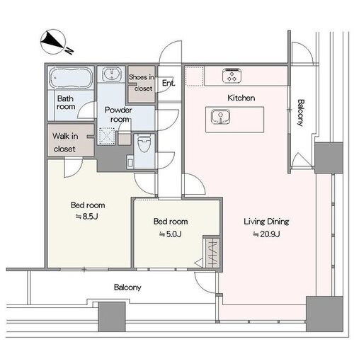 | 間取り | 2LDK + WIC+SIC | 方角 | 北東 |