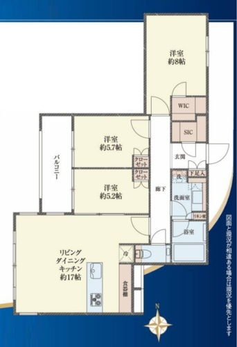 シューズインクローク付収納豊富な3LDK