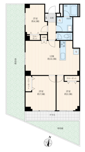| 間取り | 3LDK + 専用庭 | 方角 | 南東 |