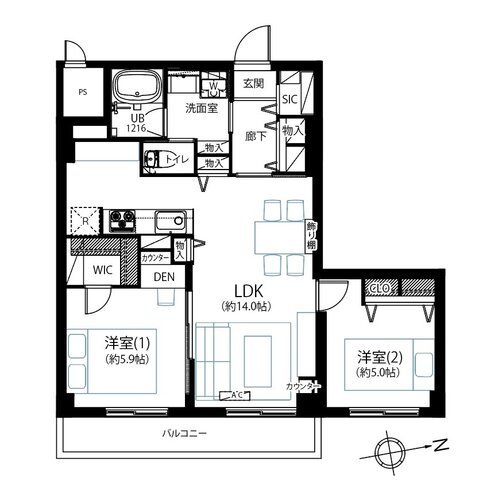 | 間取り | 2LDK + SIC+WIC+DEN | 方角 | 南東 |