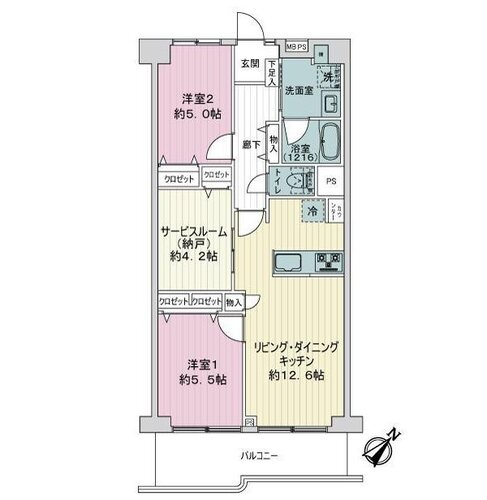 | 間取り | 2LDK + S(納戸) | 方角 | 南東 |