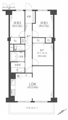 | 間取り | 2SLDK | 方角 | 南東 |