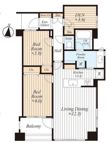| 間取り | 2LDK + DEN | 方角 | 南東 |