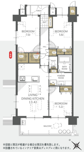 | 専有面積 | 壁芯 73.28㎡ | バルコニー面積 | 11.97㎡ |