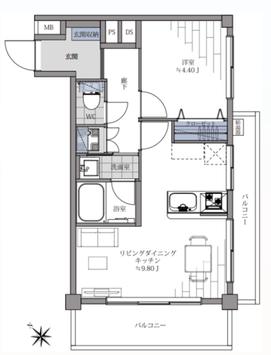 | 間取り | 1LDK | 方角 | 南西 |
