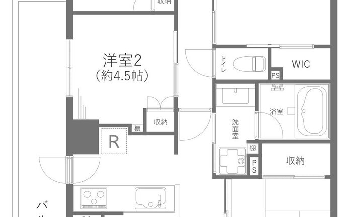 | 専有面積 | 壁芯 65.38㎡ | バルコニー面積 | 10.45㎡ |