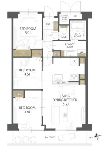 | 位置 | 部屋 | LDK15畳以上 / 全居室フローリング | |