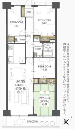 | 位置 | 部屋 | LDK15畳以上 / 和室あり / 全居室フローリング | |