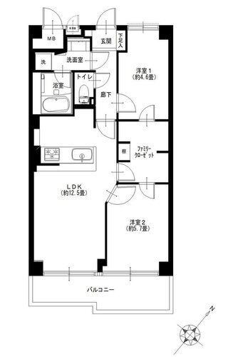 | 間取り | 2LDK + FC | 方角 | 南東 |