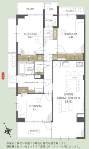 | 専有面積 | 壁芯 82.12㎡ | バルコニー面積 | 15.48㎡ |