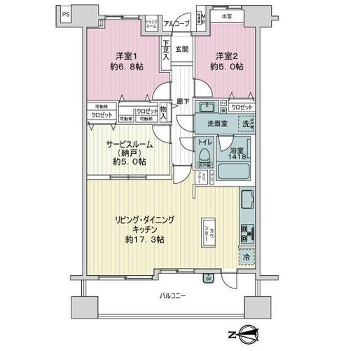| 浴室・トイレ・洗面所 | 浴室乾燥機 / 追い焚き / 浴室1418サイズ / 温水便座洗浄機 / 三面鏡 | バルコニー | スロップシンク |