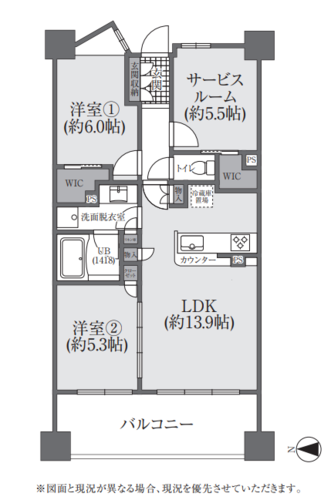 | 間取り | 2SLDK + 2WIC | 方角 | 西 |
