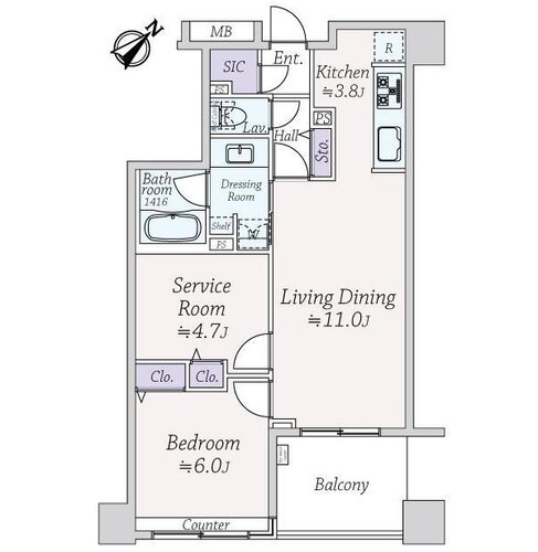 1LDK + S(納戸)/56.39㎡