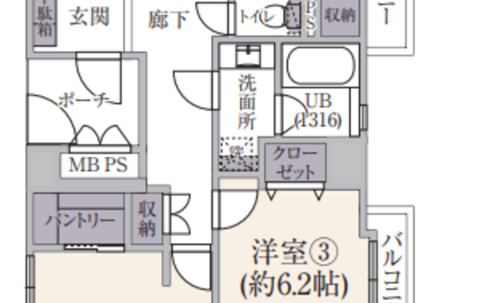 | 浴室・トイレ・洗面所 | 浴室乾燥機 / 温水便座洗浄機 / シャワー付洗面台 | バルコニー | 2面バルコニー |