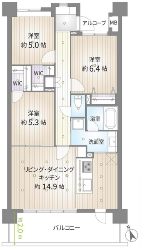 | 収納 | WICあり | キッチン | 食洗機 / 浄水器 / システムキッチン / 3口以上コンロ |